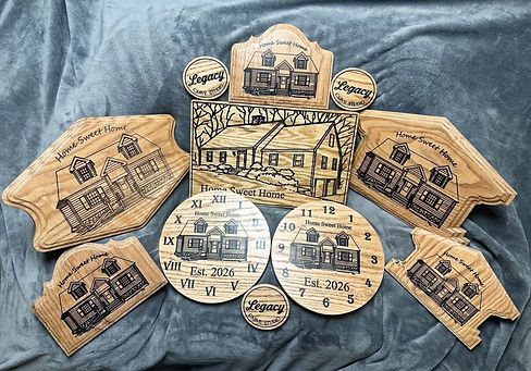 The Legacy Collection Bundle allows customers to build a coordinated set of handcrafted wood pieces that celebrate the meaning of home, family, and lasting memories. By combining items like the Heritage House Collection, clocks, coasters, and smaller accent pieces, customers can create a bundle that fits their space or gifting needs. This collection is especially popular with homeowners decorating their homes, realtors looking for memorable closing gifts, wedding and anniversary gift buyers, Airbnb hosts, and builders who want to give clients something meaningful and personalized. Whether you are celebrating a new home, marking a milestone, or giving a thoughtful gift, the Legacy Collection makes it easy to create a set that feels both personal and complete.